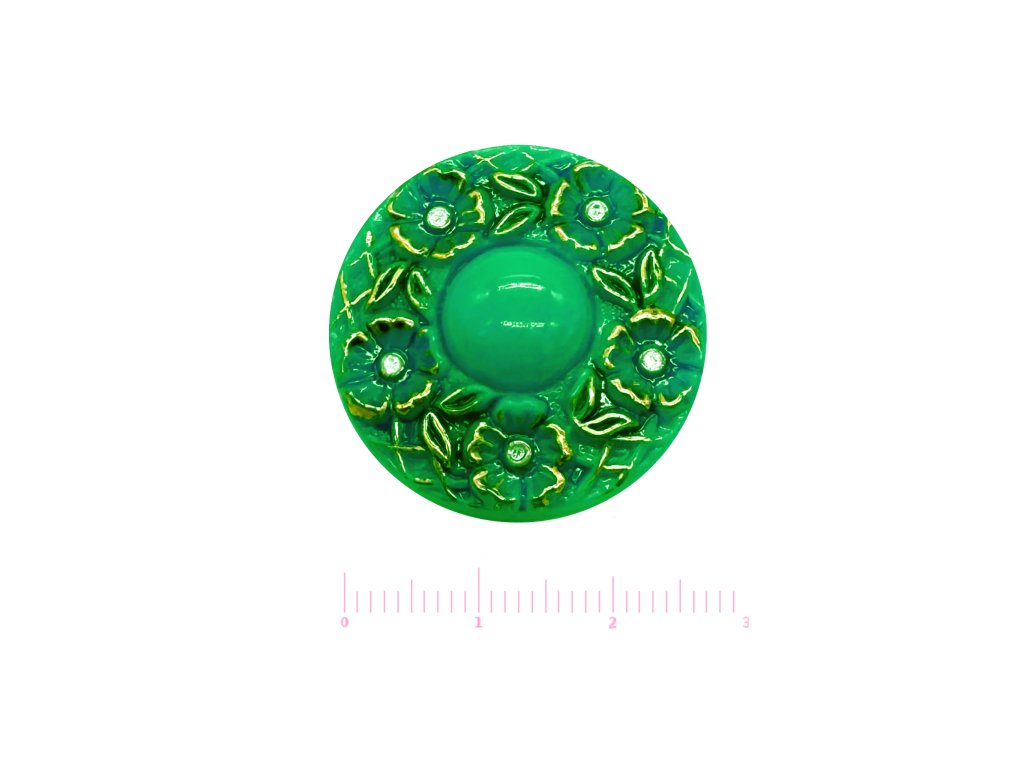 Skleněný knoflík 27 mm s kovovým očkem. Knoflík je tvořen z transparentního modrého skla.