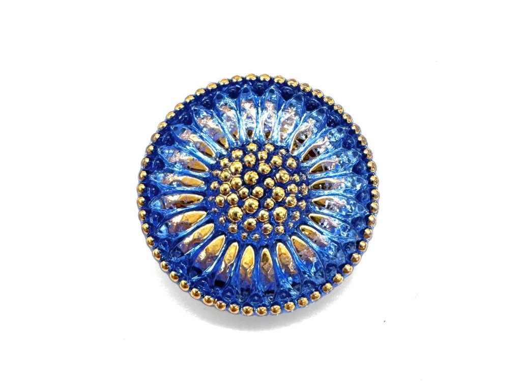 Objevte krásu v našem ručně vyráběném knoflíku o průměru 27 mm. Knoflík je tvořen z transparentního modrého skla. M Tento knoflík krásně rozzáří jakýkoli oděv či ruční dekoraci.