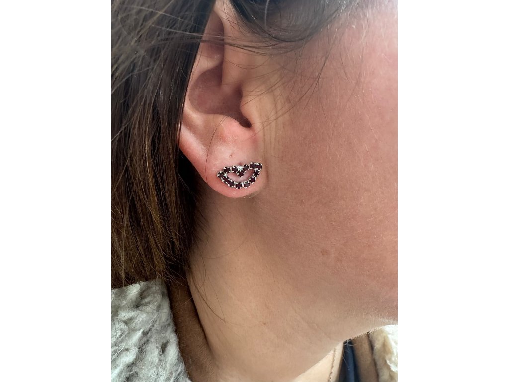 Drobné pusinkové náušnice v barvě fuchsie a stříbrném pokovení.