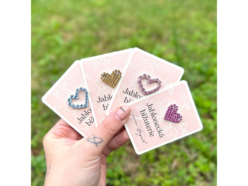 Kolekce Amor představuje drobná štrasová srdíčka ve tvaru brože, která v sobě spojují jemný design a kvalitní zpracování. Každý kousek je vyroben tradiční technikou letované bižuterie, kdy se jednotlivé části ručně letují do speciální hmoty pomocí pájky.